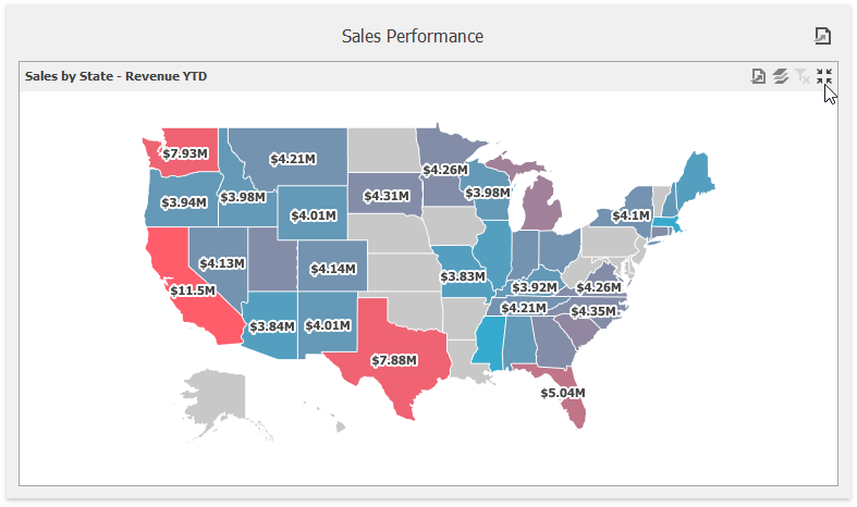 To maximize a dashboard item, click the Maximize button in the dashboard item caption.