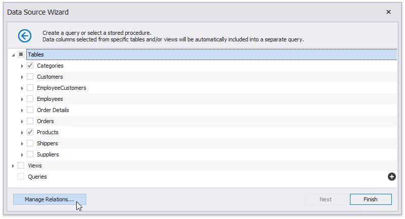 Click Finish to complete the Data Source Wizard. If the selected queries or stored procedures contain any parameters, you can go to the next wizard page and define their values.