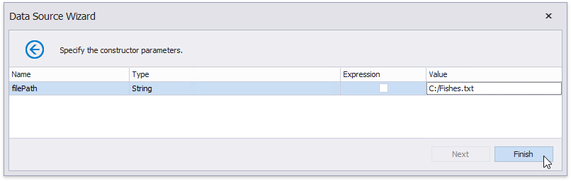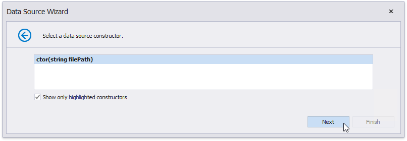 On the following wizard page, select a data source constructor and click Next. Use the Show only highlighted constructors checkbox to exclude irrelevant constructors from this list.