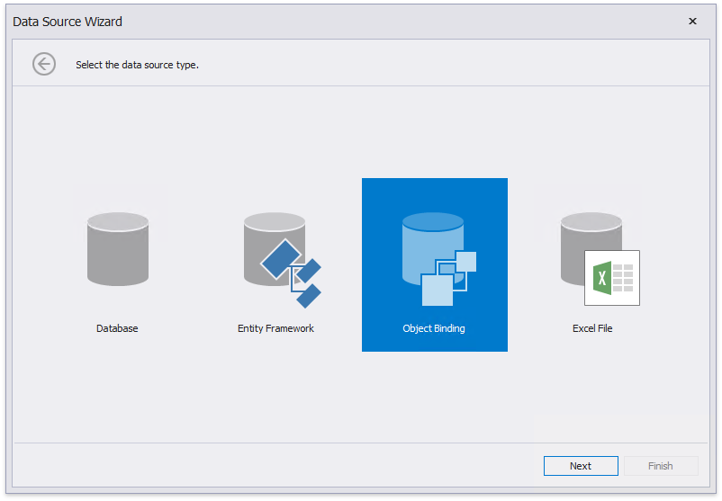 On the next wizard page, choose the Object Binding option and click Next.