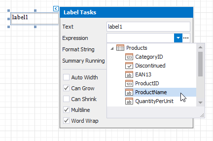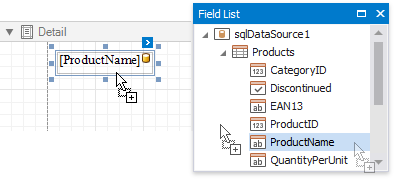 The Field List panel allows you to drop fields onto the design surface or existing report controls. All binding ways are identical in the data bindings and expression bindings modes.