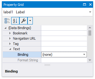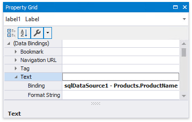 Expand the (Data Bindings) category and assign a data field to the Text property.