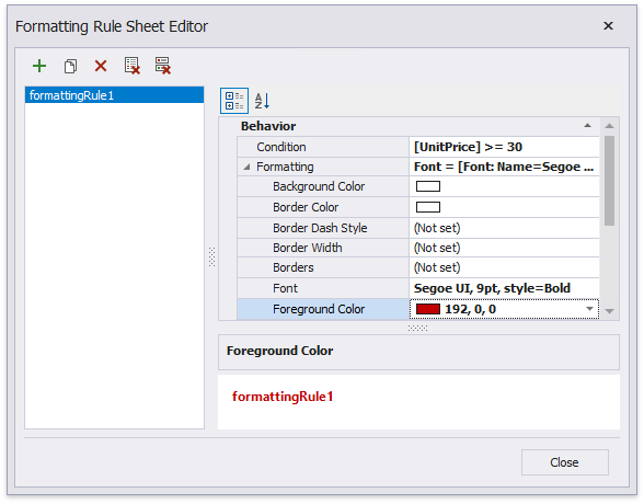 Refer to Conditionally Change a Control Appearance for an example. | Create formatting rules and assign them to report controls.