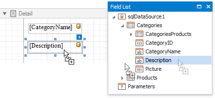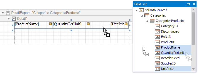 Drop the required data fields from the Field List onto the Detail band.