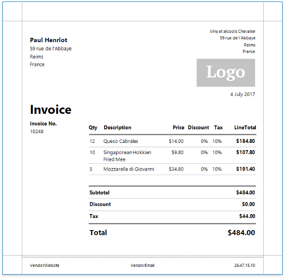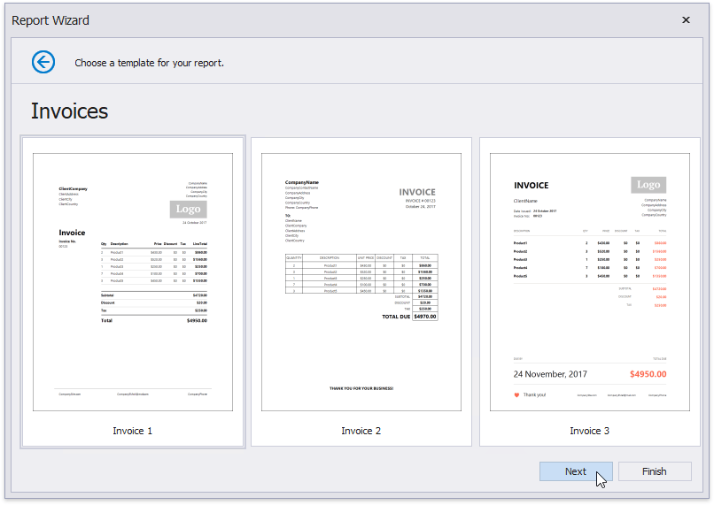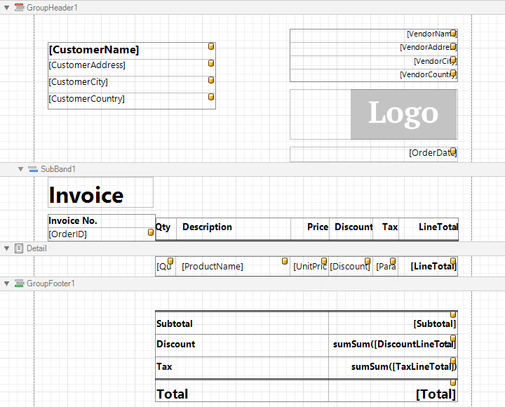 [!Note] See the Create an Invoice Manually topic to learn how to create an invoice report with a custom layout from scratch.