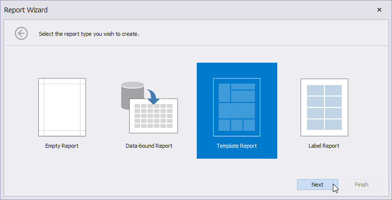 On the next wizard page, choose the report template that specifies elements’ arrangement and appearance settings.