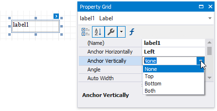 You can anchor a control to the top, bottom, or both edges of its parent container using the Anchor Horizontally and Anchor Vertically properties.