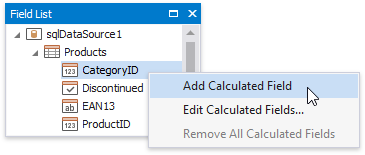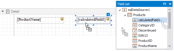 Drop the required data fields and the created calculated field from the Field List on the report’s Detail band.
