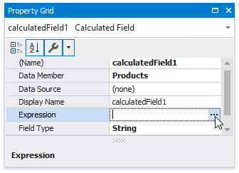 Switch to the Property Grid and set the Field Type property to String. Then. click the Expression property’s ellipsis button.
