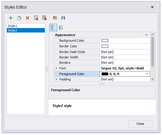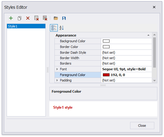In the invoked Styles Editor, customize the created style’s appearance settings.