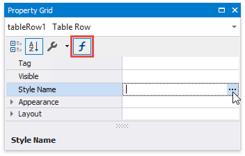 Switch to the Expressions section in the Property Grid and click the ellipsis button for the control’s Style Name property.