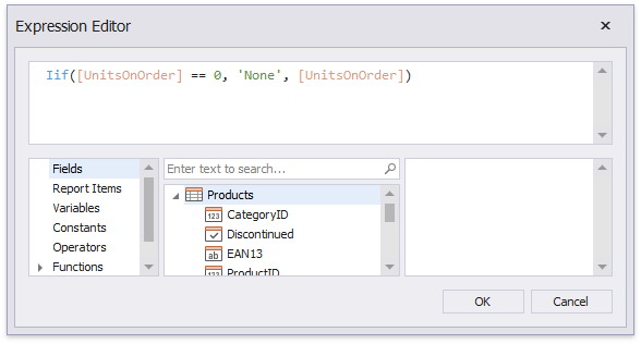 Iif([UnitsOnOrder] == 0, ‘None’, [UnitsOnOrder])