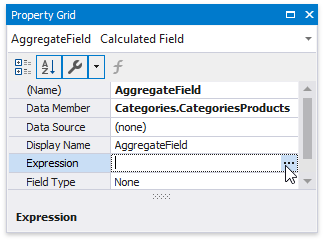 Select the calculated field, switch to the Property Grid and click the Expression property’s ellipsis button.