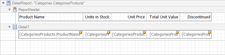 Create a new or open an existing data-bound report. This tutorial starts with the following report layout: