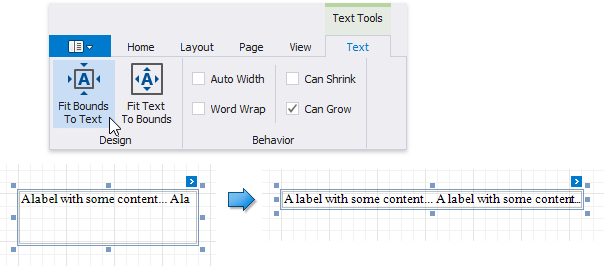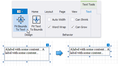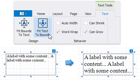 Use the Fit Text To Bounds button to adjust the control’s font size to fit its area. The Word Wrap option defines whether the resulting text can occupy multiple lines or should be in a single line.