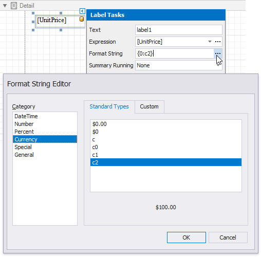 You can also specify output values’ format using the Format String property.