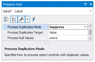 The Process Duplicates Mode, Process Duplicates Target and Process Null Values options enable you to hide a control when a duplicated or null value appears in an assigned data source.