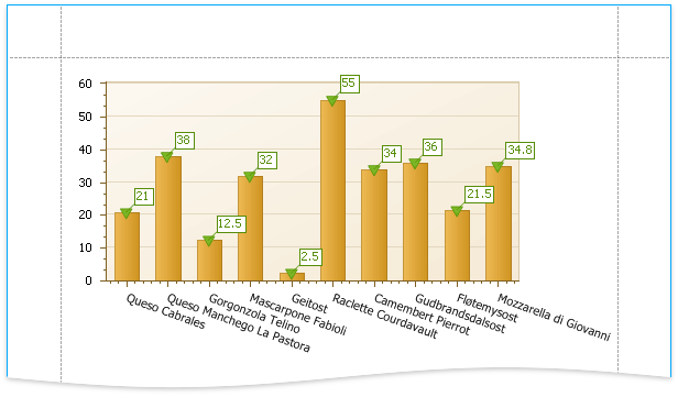 This document describes how to add a chart to a report, provide data for the chart series, and set up a chart’s elements. In this example, series data has a single data source. You can also use different data sources for different series.