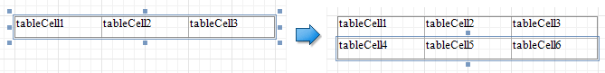 Inserts a row below the current cell and shifts the existing rows down. This command increases the band height to accommodate all the rows if there is not enough space under the table.