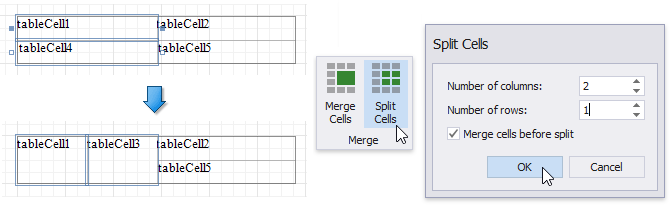 Insert, Split and Merge Table Cells